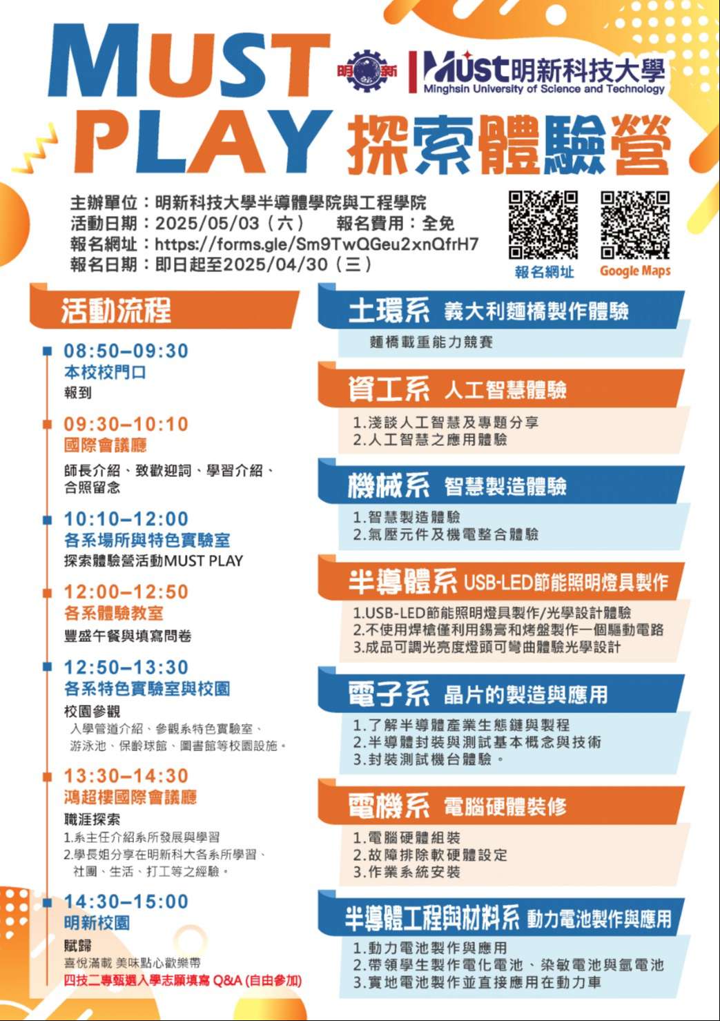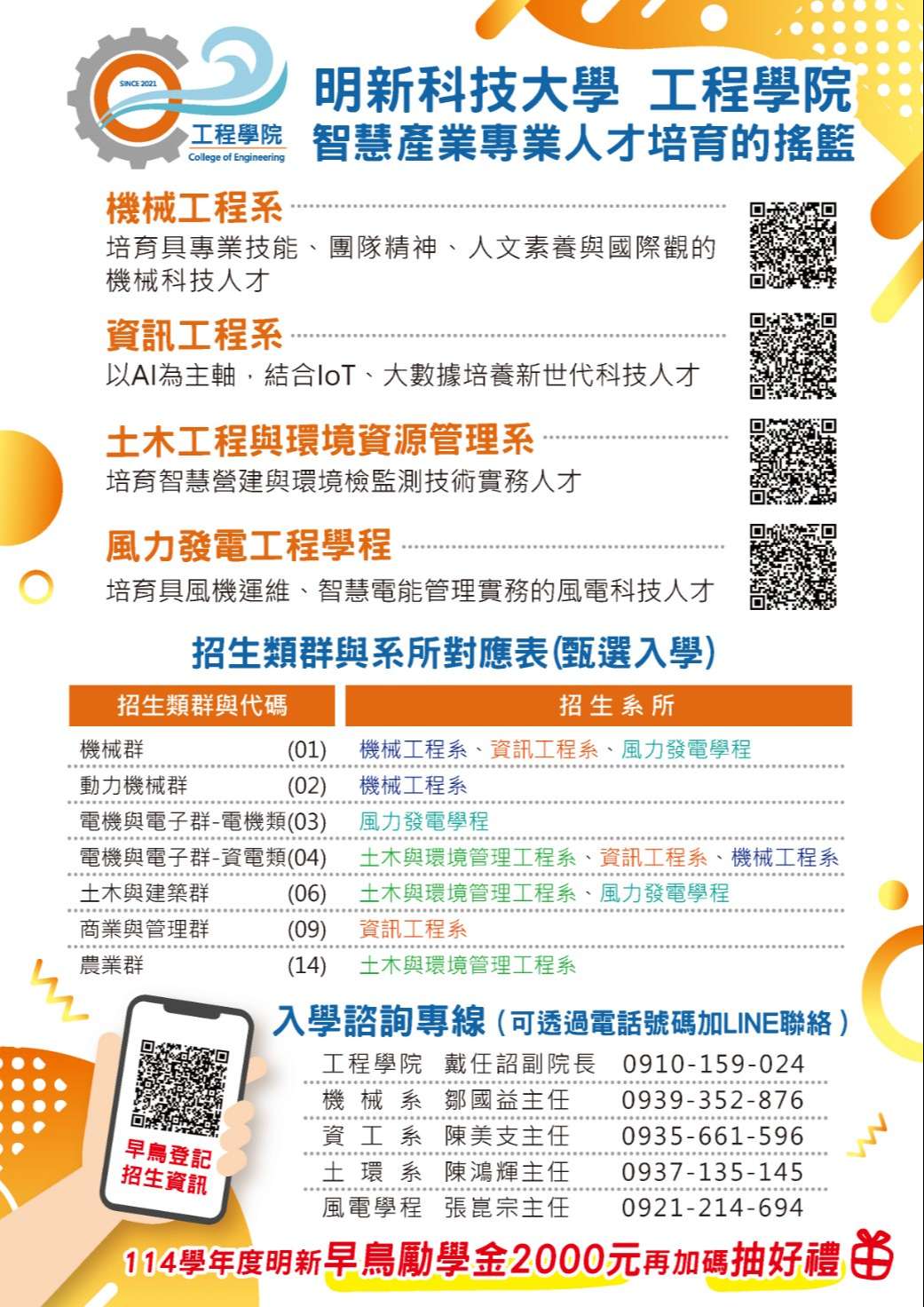 (二)活動地點:明新科技大學各系館(新竹縣新豐鄉新興路1 號)。
