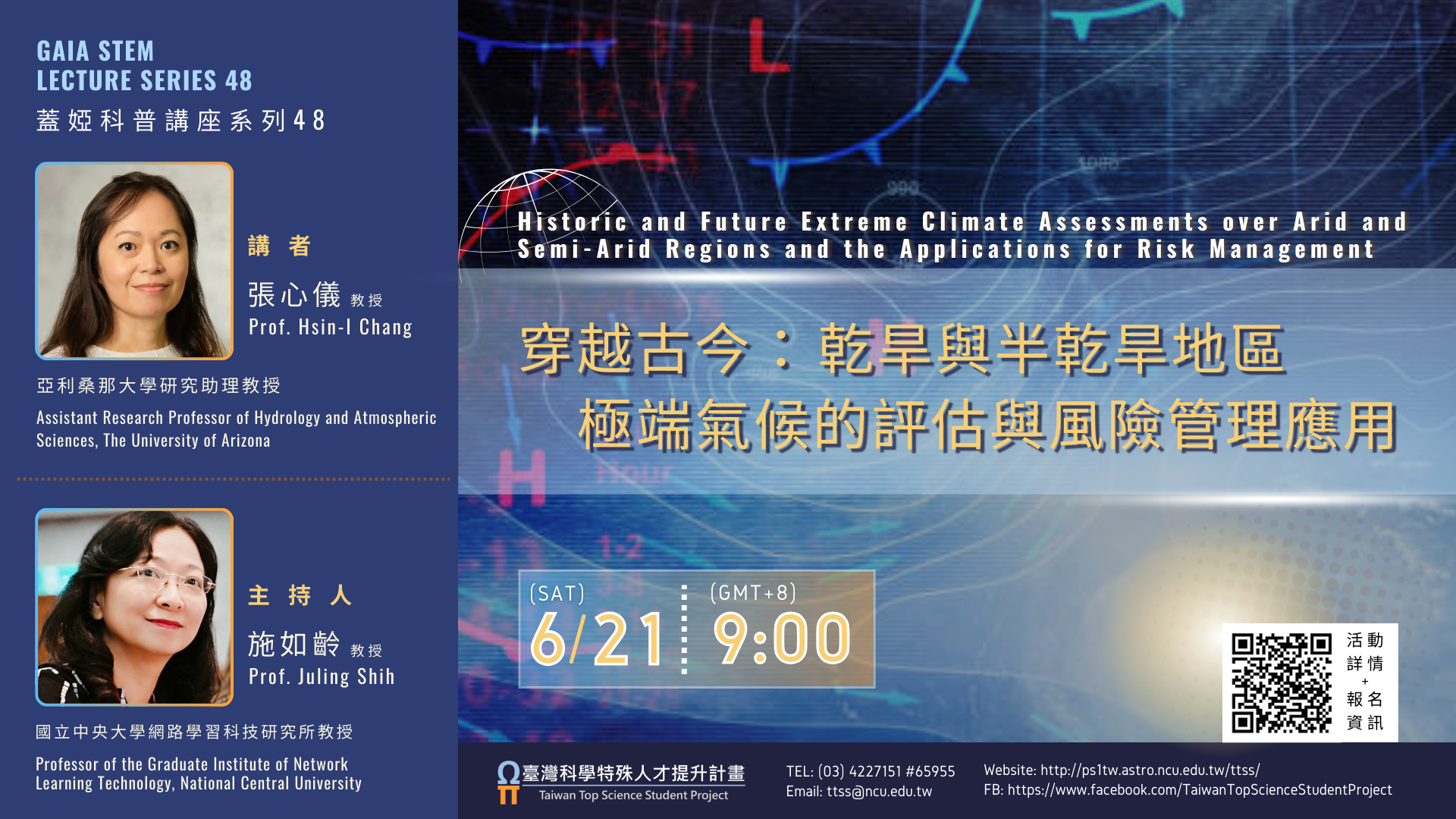 (二)講題:穿越古今:乾旱與半乾旱地區極端氣候的評估與風險管理應用。