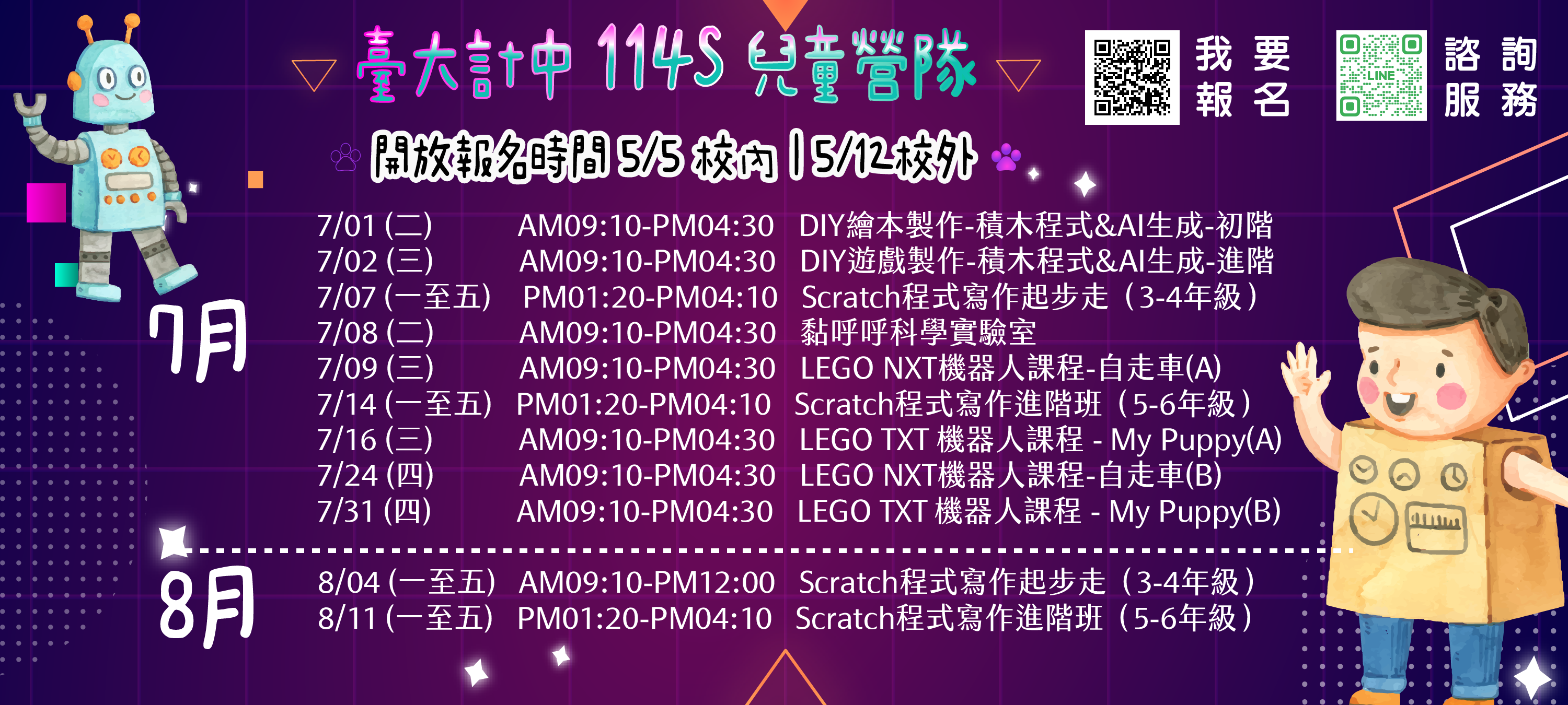 一、本校計算機及資訊網路中心於114年6月18日起辦理暑假資訊應用課程,課程詳細資訊與報名網址請至該中心網站查詢請點我。