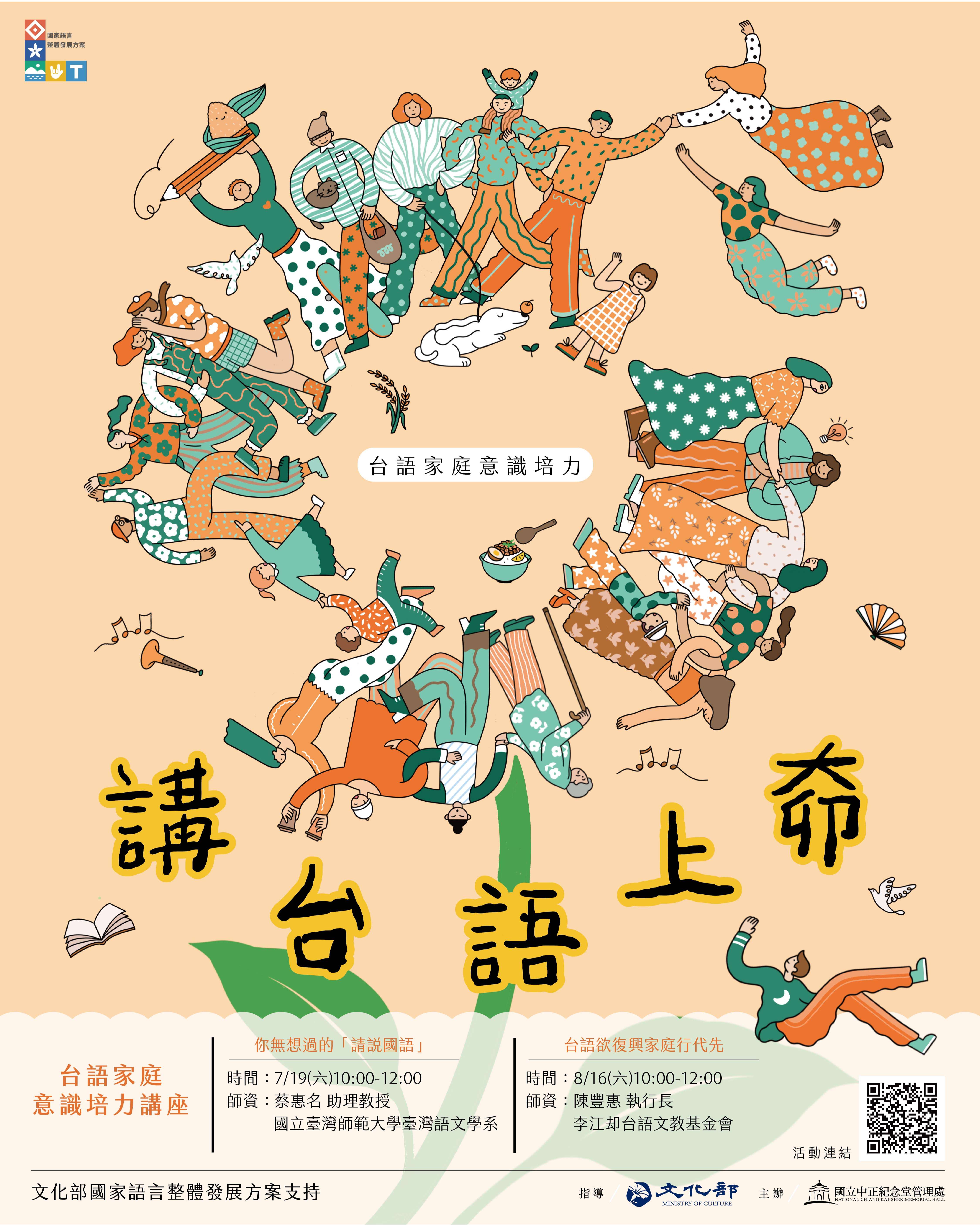 三、各課程配合文化部「培育台語家庭計畫」集點,歡迎台語家庭參與學習;且講座課程可依參與時數核發公務人員終身學習時數,詳情請洽國立中正紀念堂管理處官網