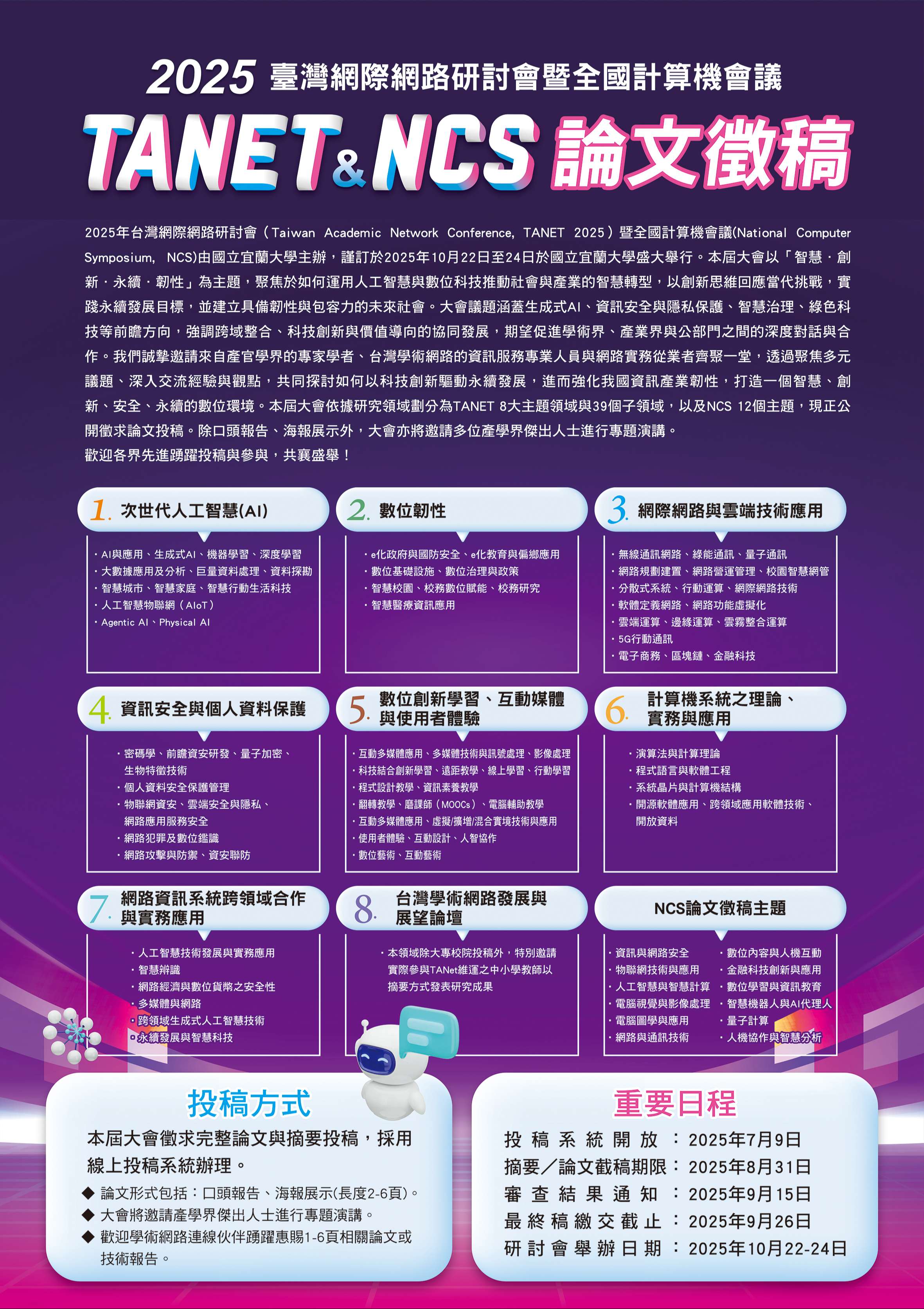 教育部「2025年臺灣網際網路研討會TANET暨全國計算機會議NCS」: