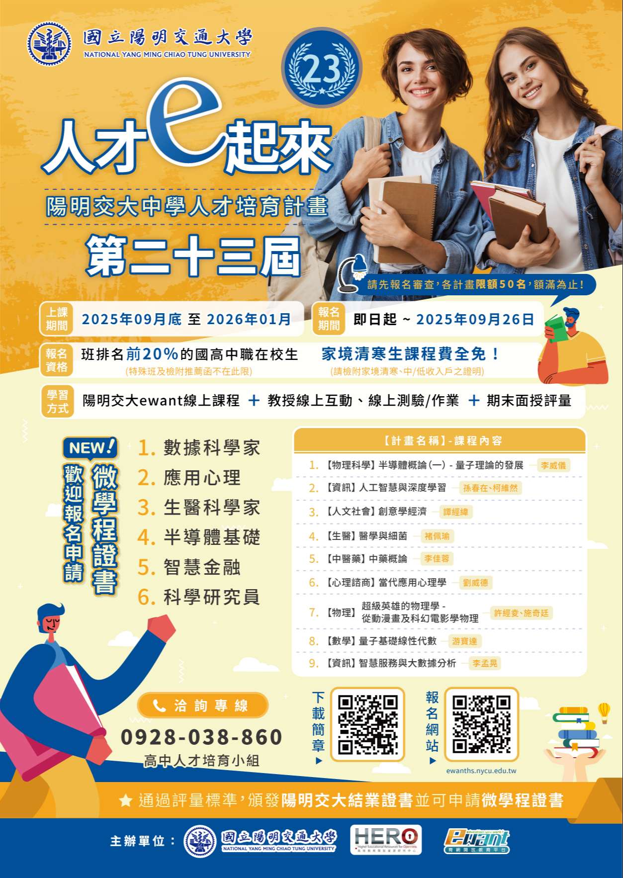 國立陽明交通大學辦理「第二十三期中學人才培育計畫」: