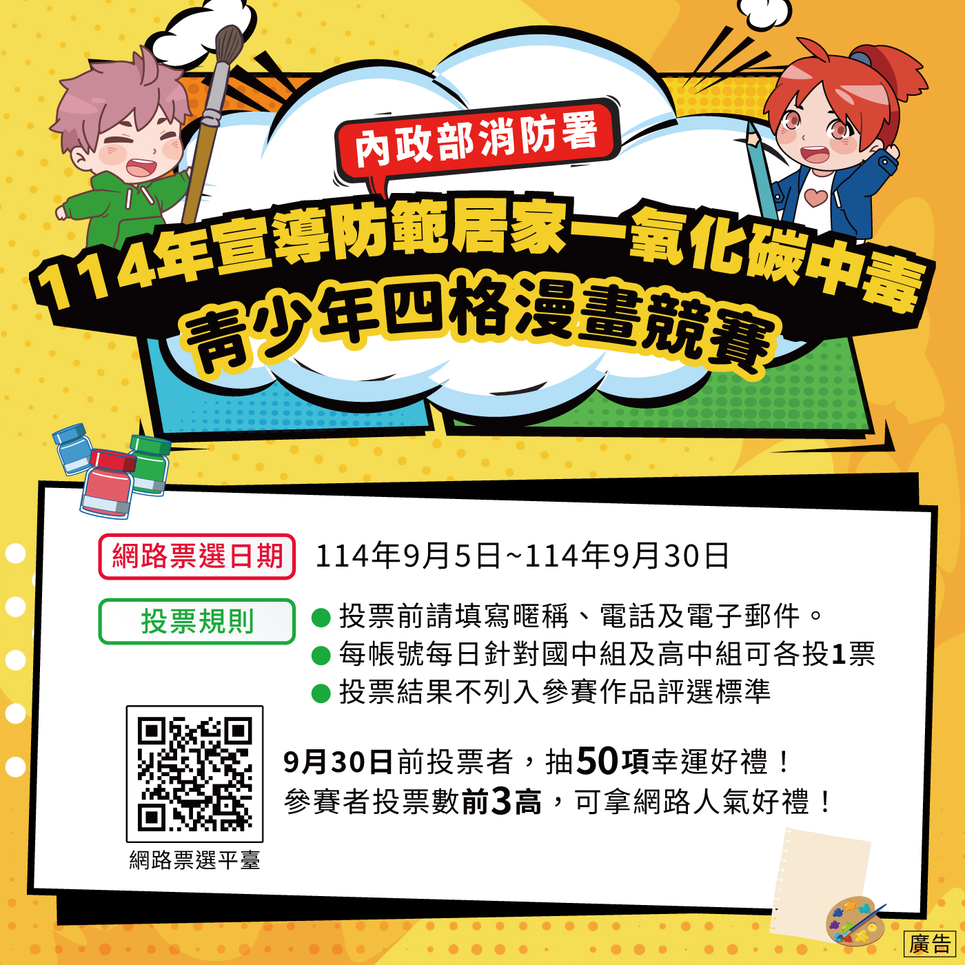 二、旨揭票選活動期限自即日起至114年9月30日止,請學生踴躍投票。