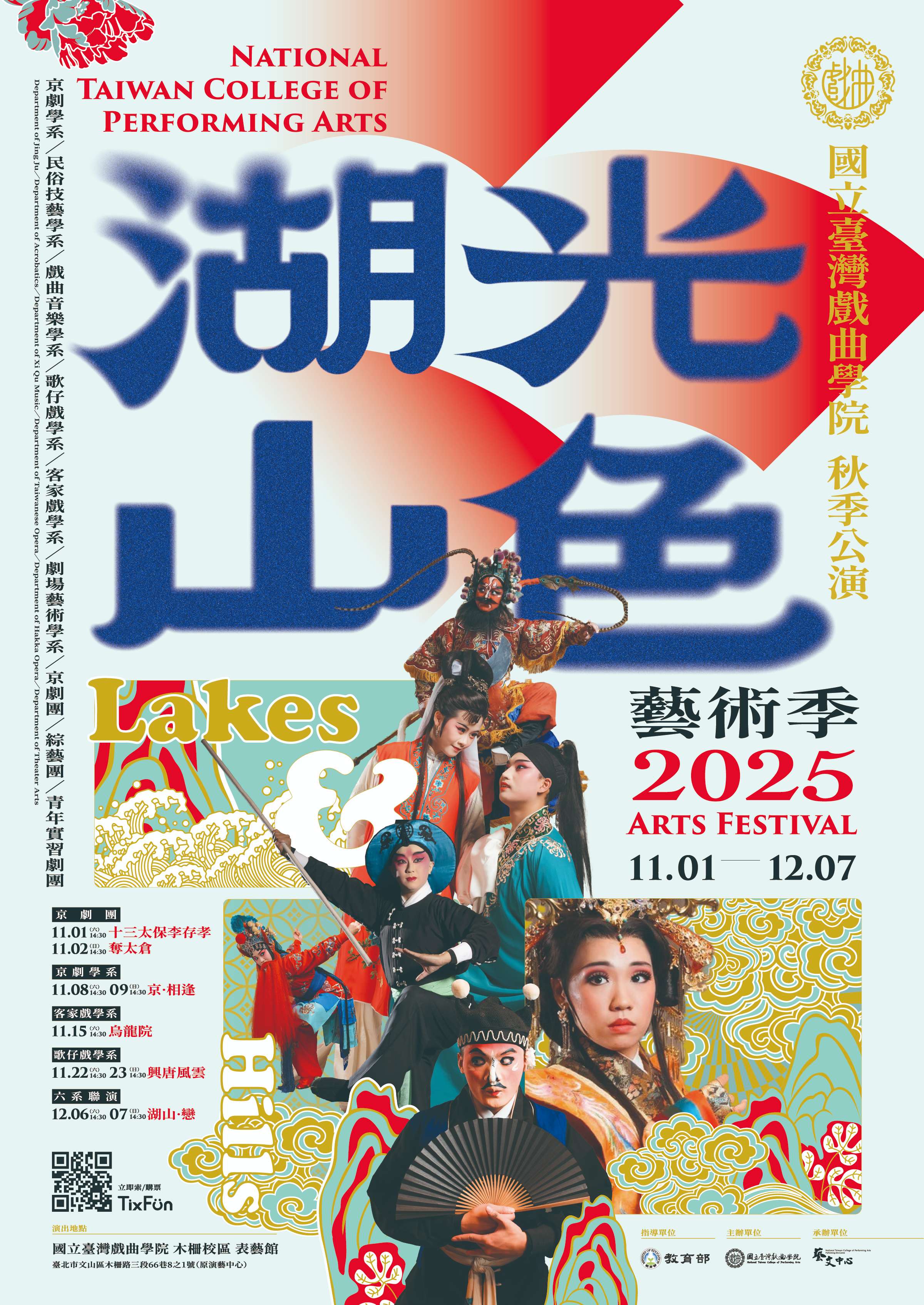 一、本校藝文中心為推廣戲曲文化之傳承並落實藝術教育之根 基,每年度均策劃辦理「湖光山色藝術季」系列演出,本 (114)年度演出自11月1日開跑,於本校木柵校區表藝館 共推出五檔演出,包含京劇、客家戲、歌仔戲及六系聯演 等多元劇種,爰請貴機關(校)協助轉知演出資訊,並鼓 勵所屬單位及教職員工生踴躍參與。