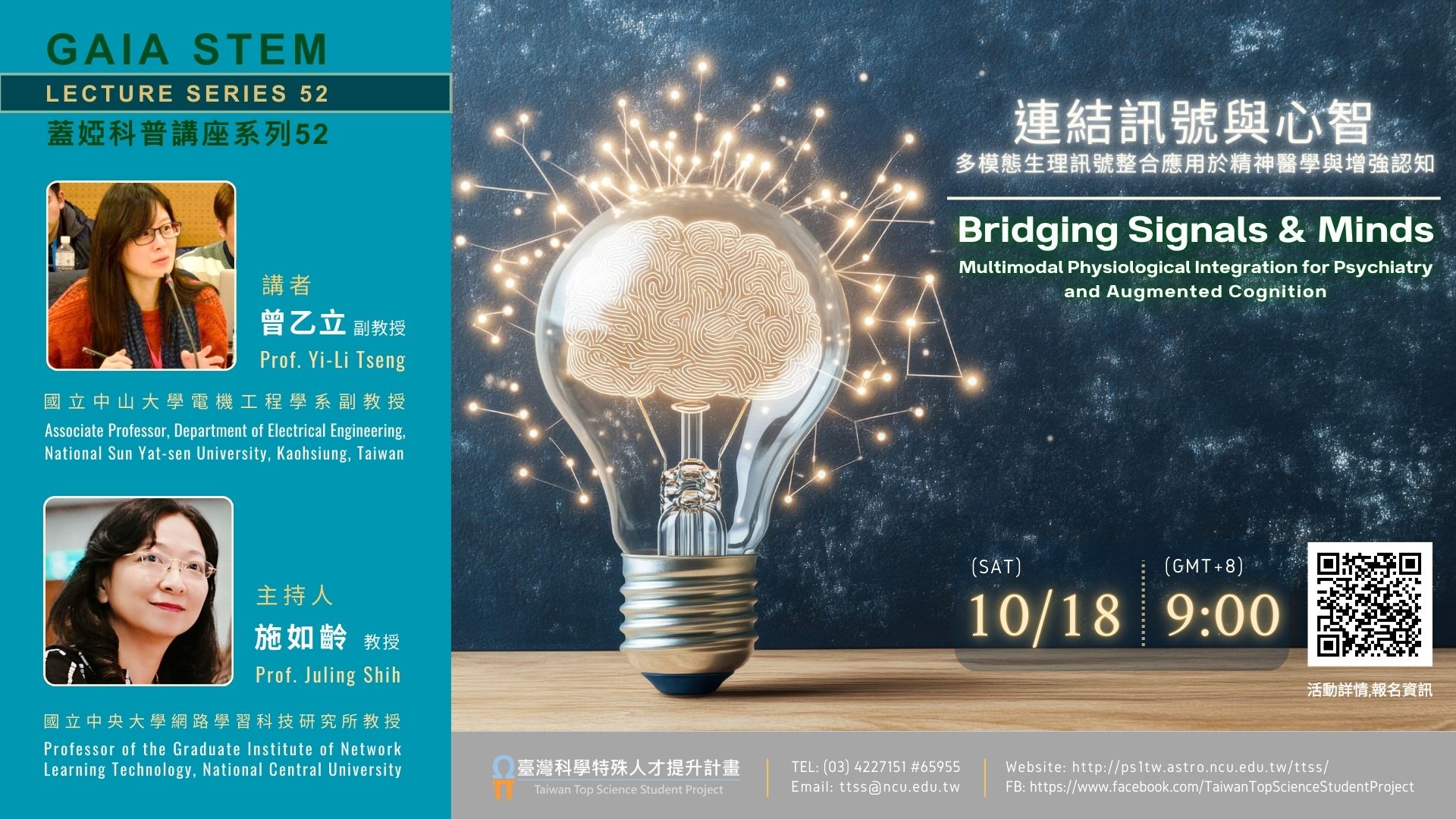 (三)主持人:施如齡 教授 (國立中央大學網路學習科技研究所)。(四)時間: 114年10月18日, 上午9時 (GMT+8)。