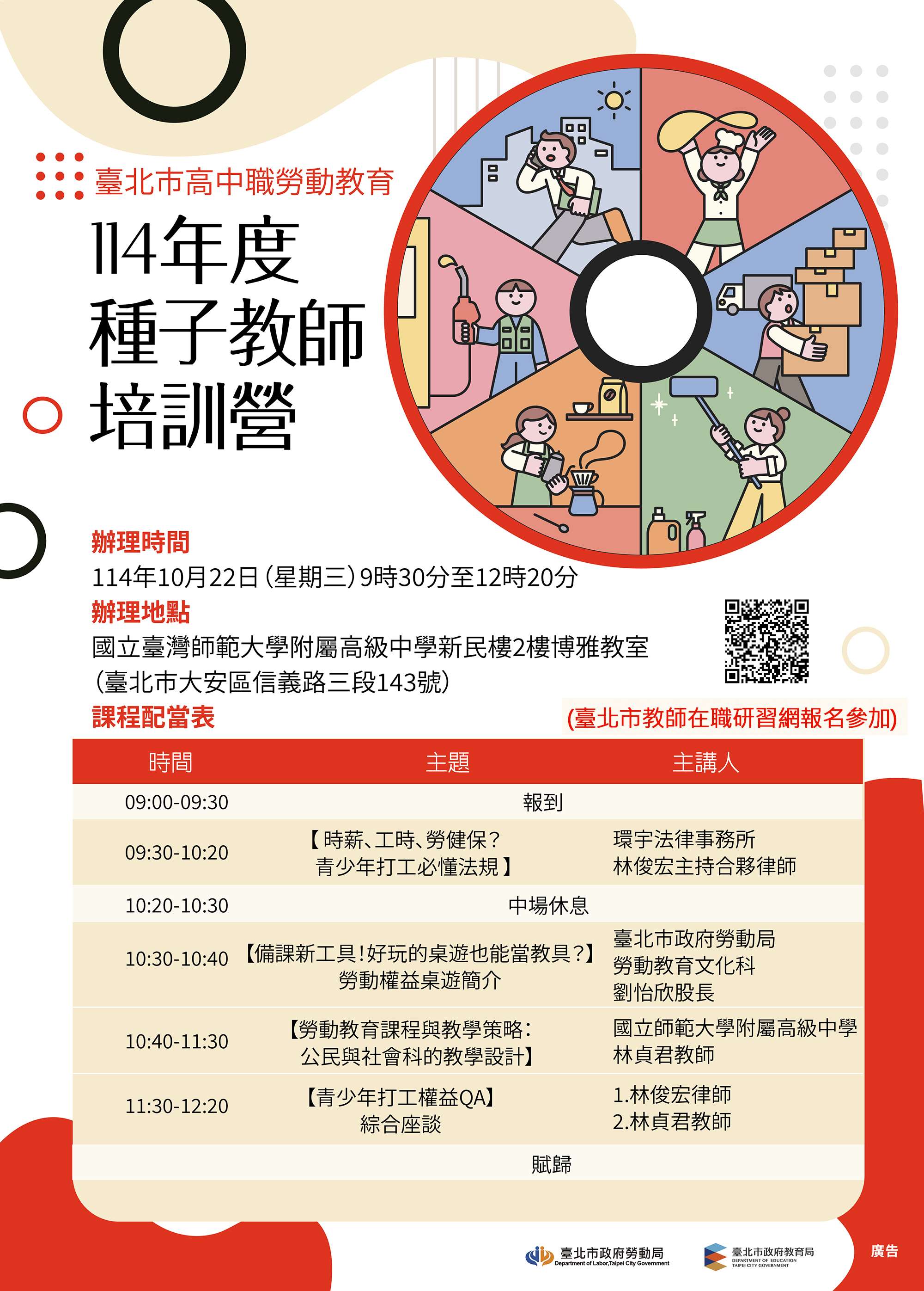 一、依本局「114年度勞動教育種子教師培訓營實施計畫畫」辦 理。