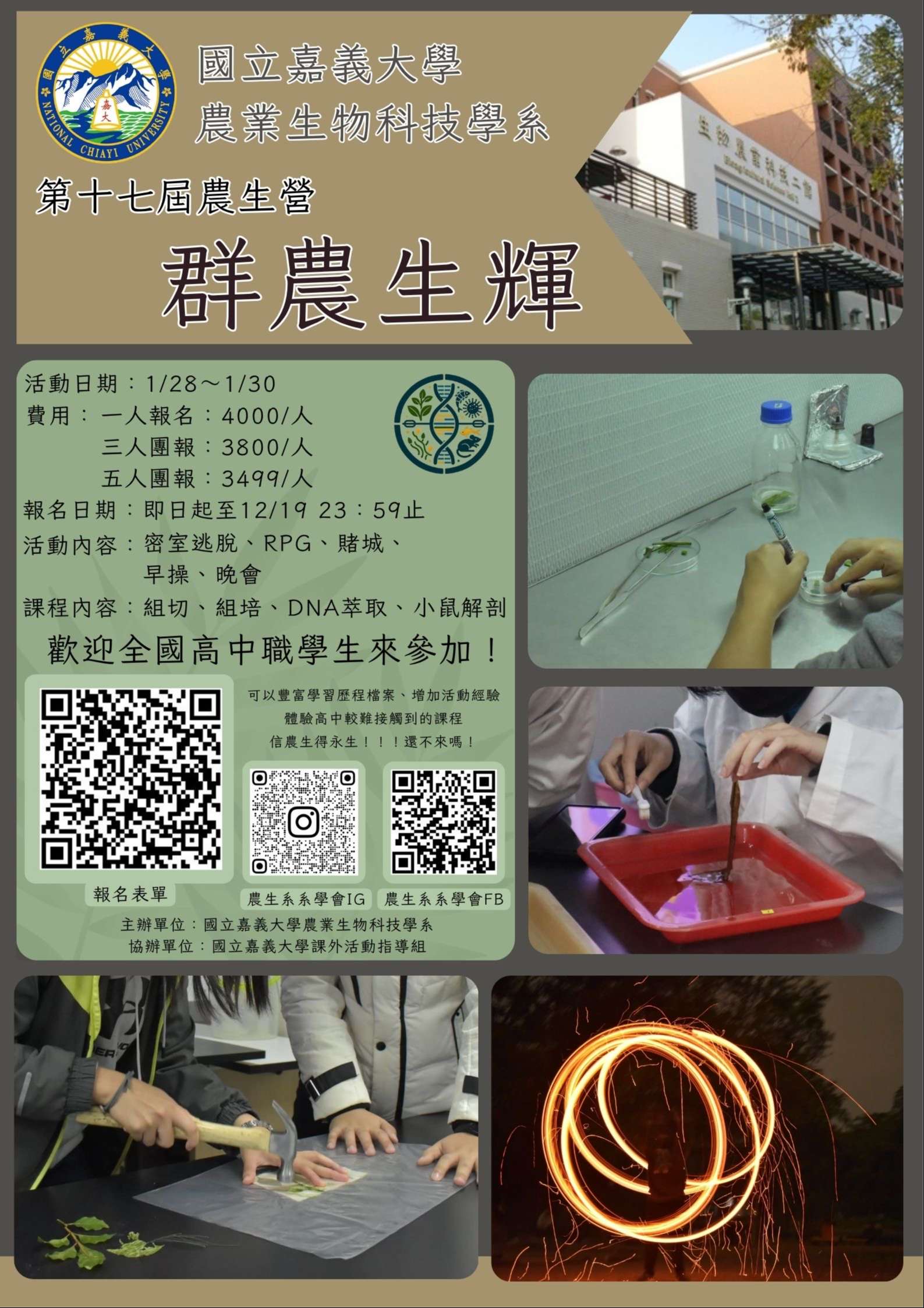 說明:旨揭營隊係為促進高中生瞭解該系課程內容及基礎生物技術知識。
