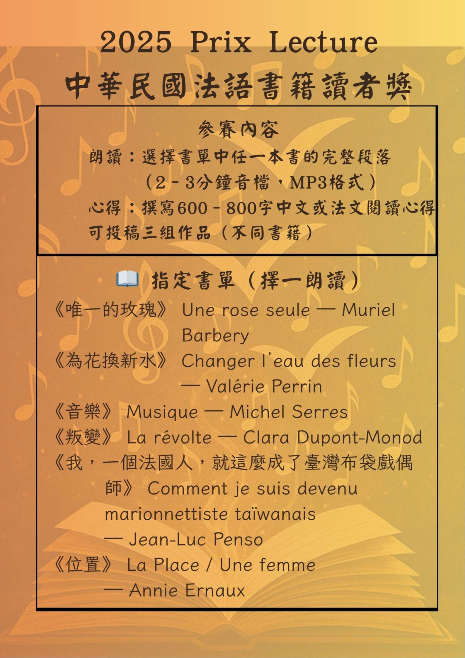 4. 語言限制:朗讀與心得撰寫僅限使用中文或法文。