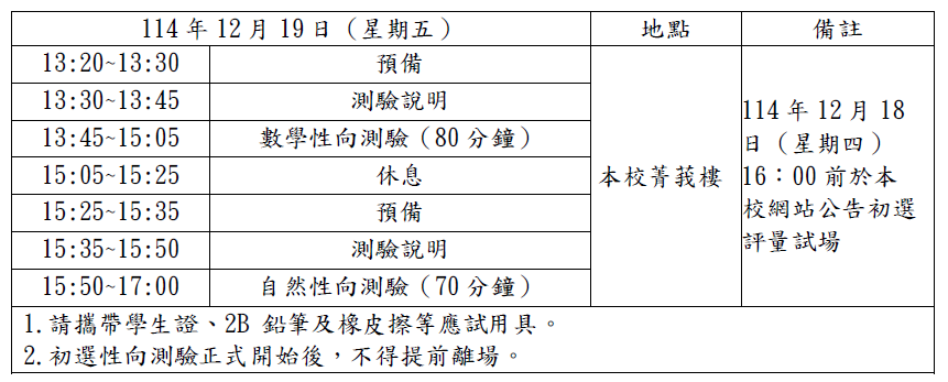 (三)試場位置:本校修齊樓2樓生涯規劃教室