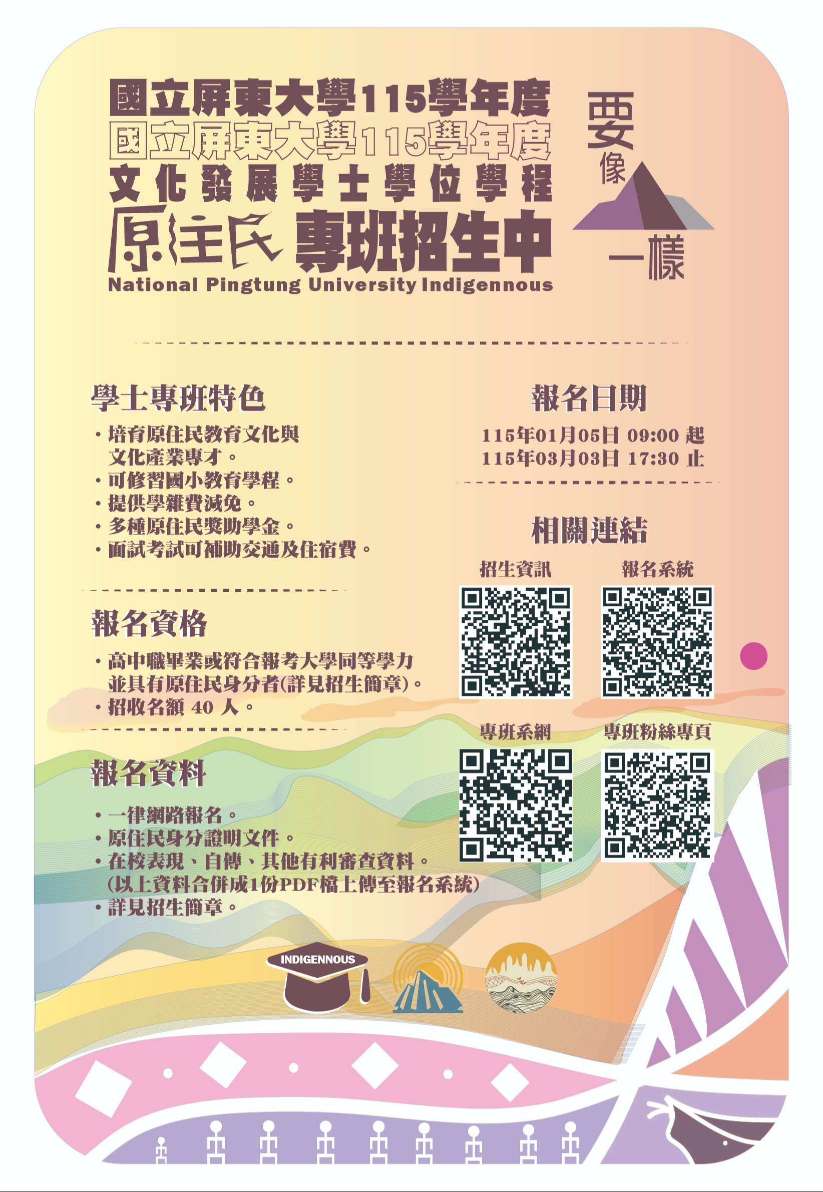 四、報考資格、招生名額、面試項目及其他相關考試事項等詳如招生簡章,隨函檢附招生簡章及海報。