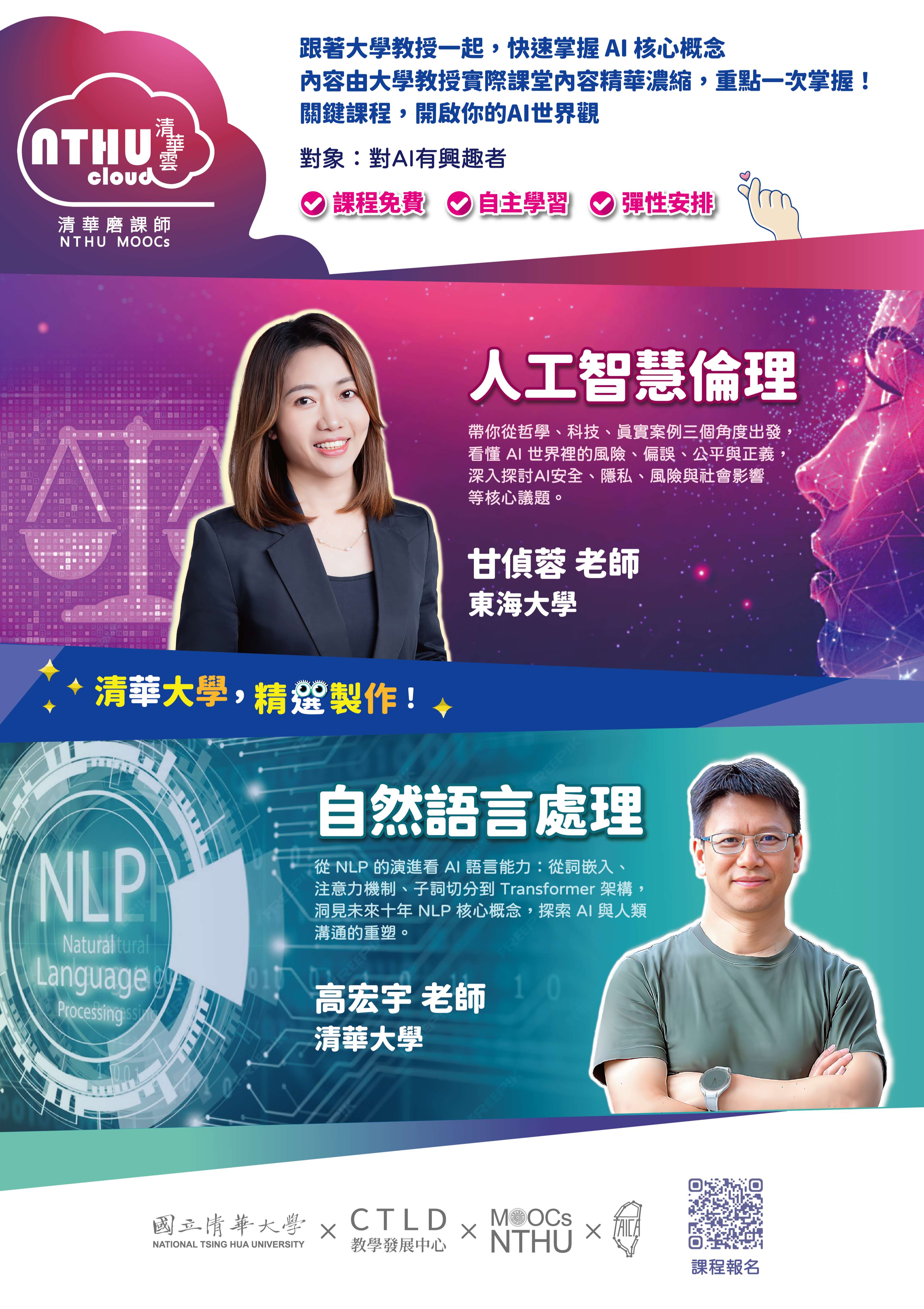 三、三門課程均於「清華大學磨課師(NTHU MOOCs)」平台免費開放修習,無需報名費用,修課者可依自身時間彈性學習。