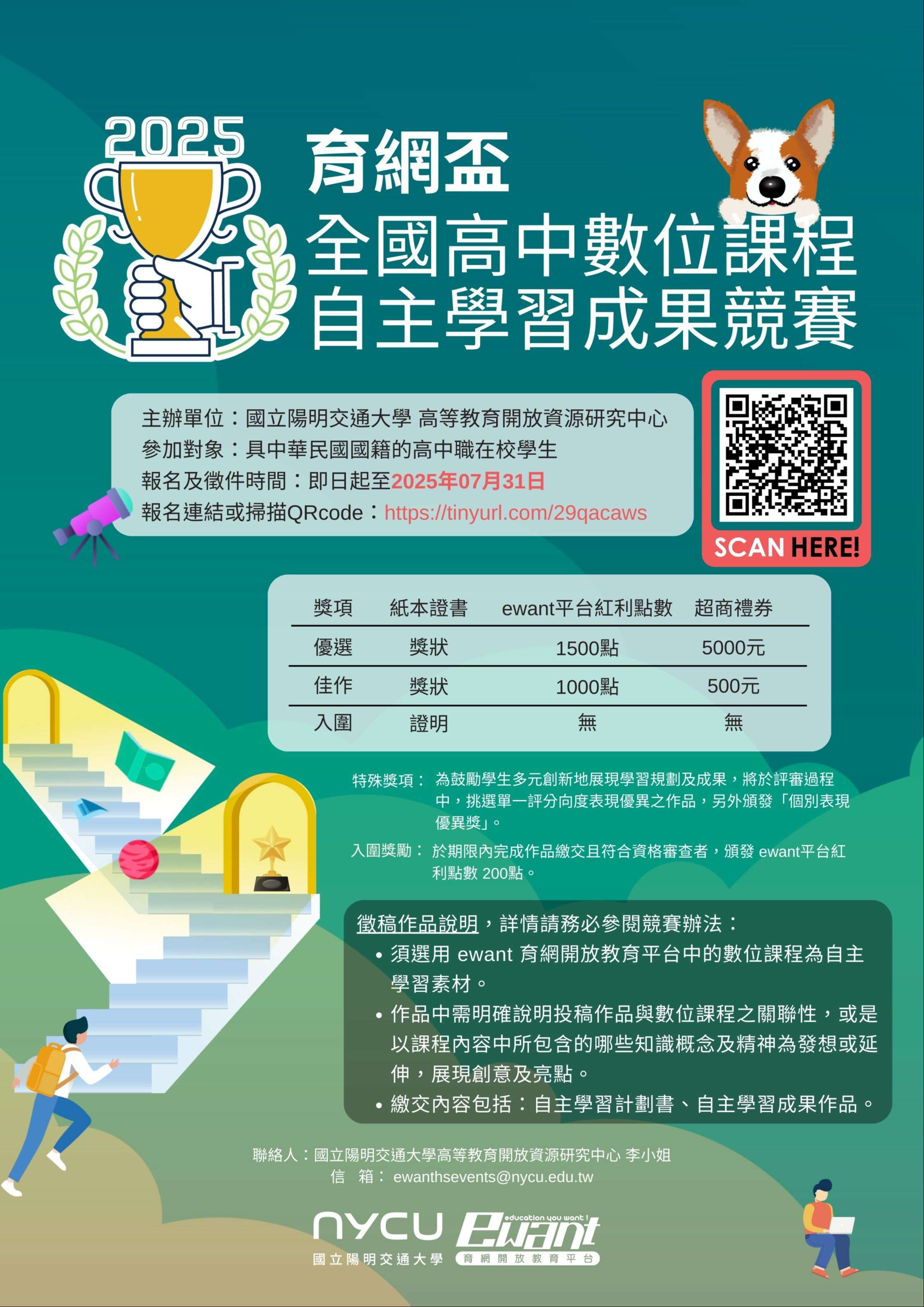 國立陽明交通大學舉辦「2025育網盃全國高中數位課程自主學習成果競賽」:
