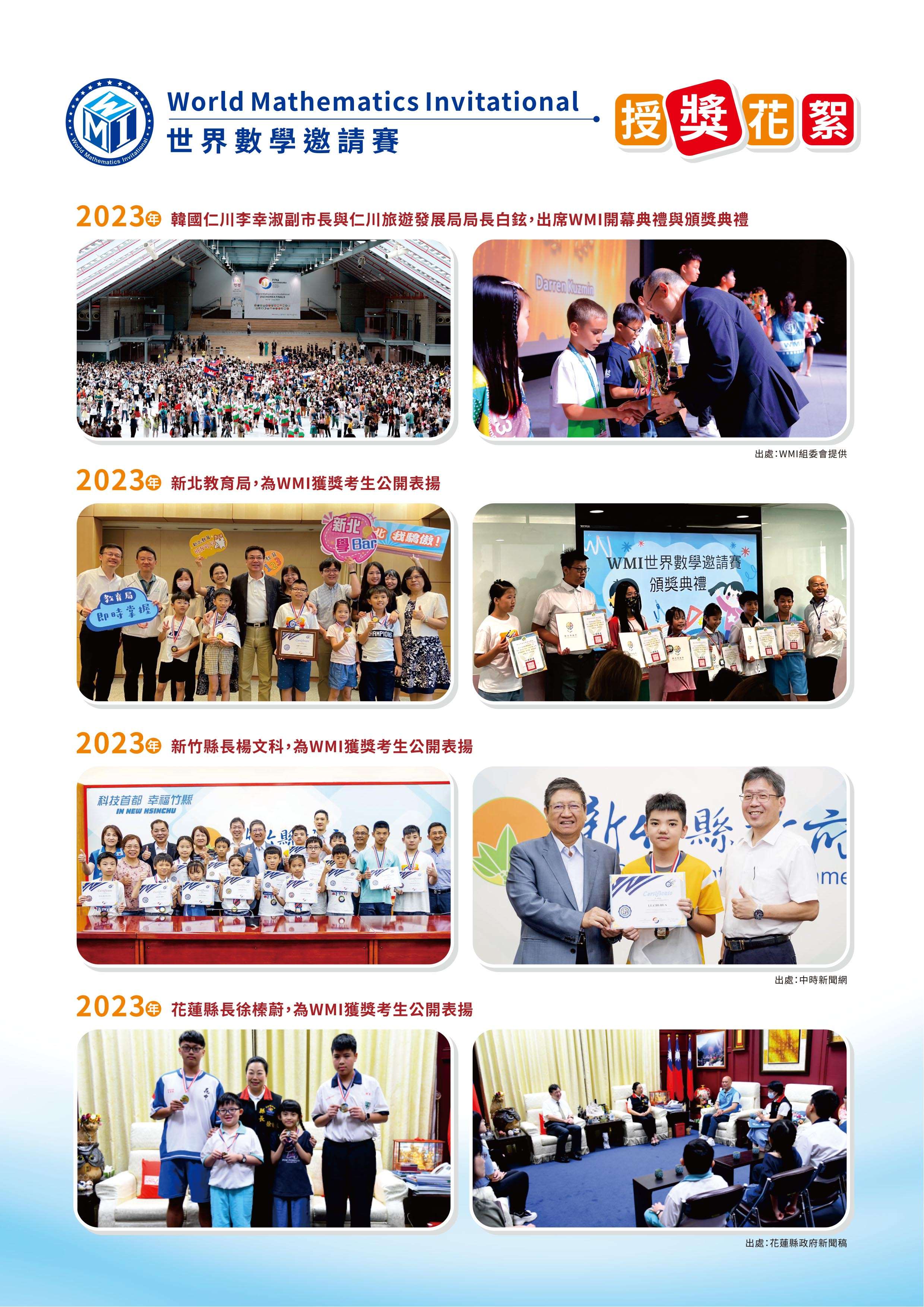 二、WMI世界數學邀請賽為第一個由台灣發起舉辦的國際性數學競賽,集合世界各地致力於數學推廣組織機構,每年將在不同國舉辦。